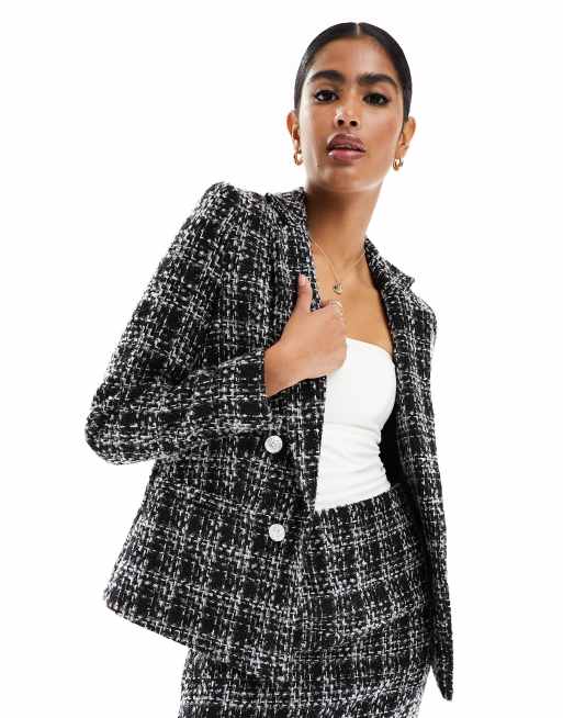 New Look - Blazer in bouclé nero a quadri in coordinato