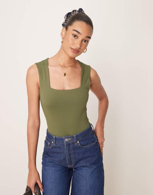 New Look - Body sinuoso kaki con scollo squadrato