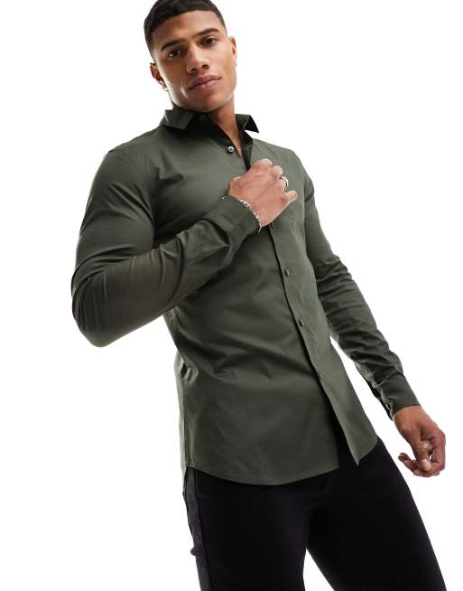New Look - Camicia attillata a maniche lunghe in popeline kaki