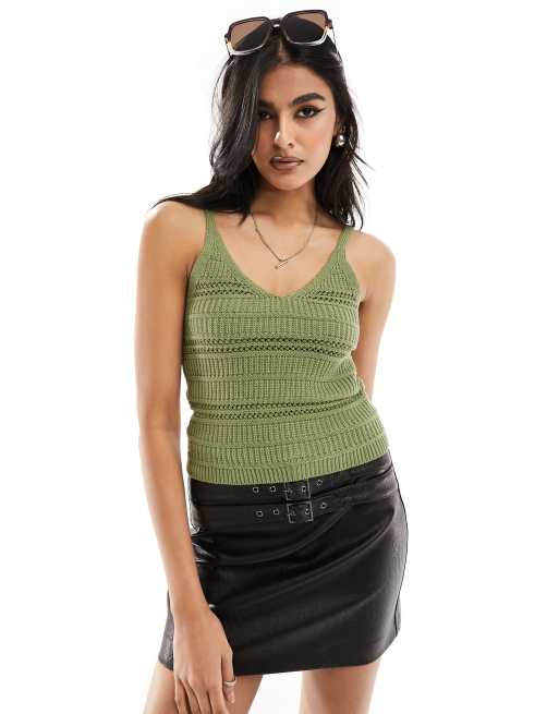 New Look - Canottiera in maglia color kaki