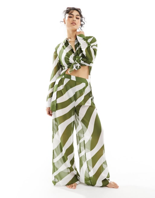 New Look - Coordinato da mare Mix and Match color kaki a righe