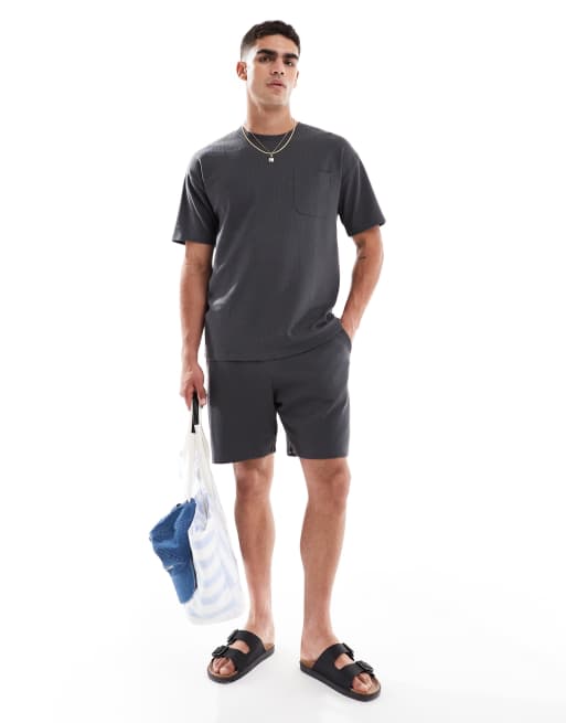 New Look - Coordinato nero piqué con t-shirt e pantaloncini