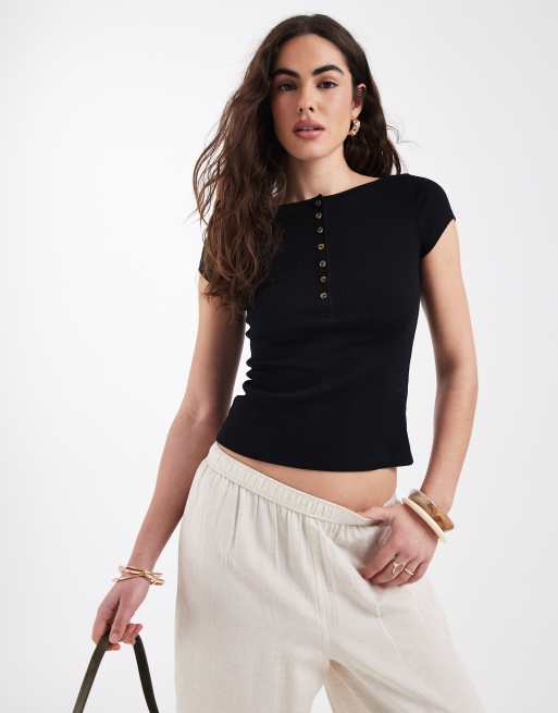 New Look - Crop top a maniche corte nero con bottoni
