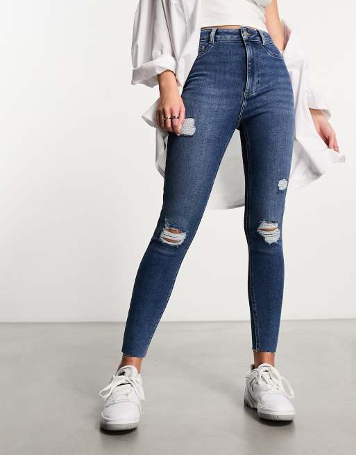 New Look - Jeans skinny strappati blu medio
