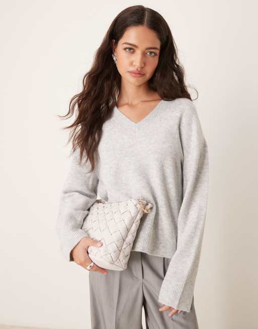 New Look - Maglione grigio chiaro con scollo a V