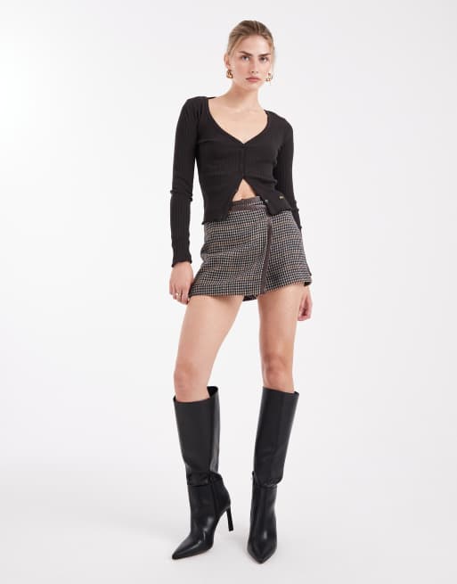 New Look - Minigonna pantalone a portafoglio marrone a quadri