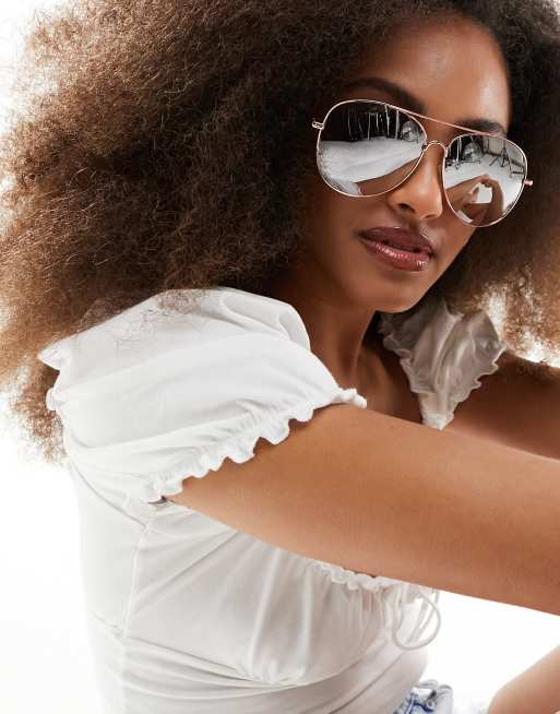 New Look - Occhiali da sole rotondi specchiati rosa oro