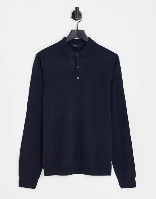 New Look - Polo slim in maglia blu navy