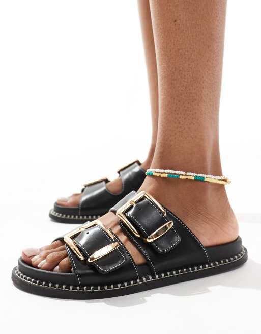 New Look - Sandali neri con doppio cinturino e impunture a contrasto