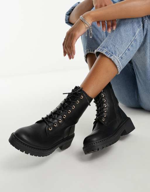New Look - Scarponcini stringati neri in similpelle PU