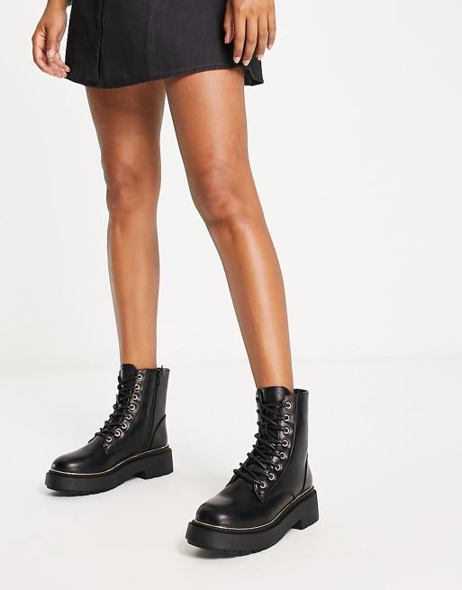 New Look - Stivaletti bassi stringati con suola spessa neri