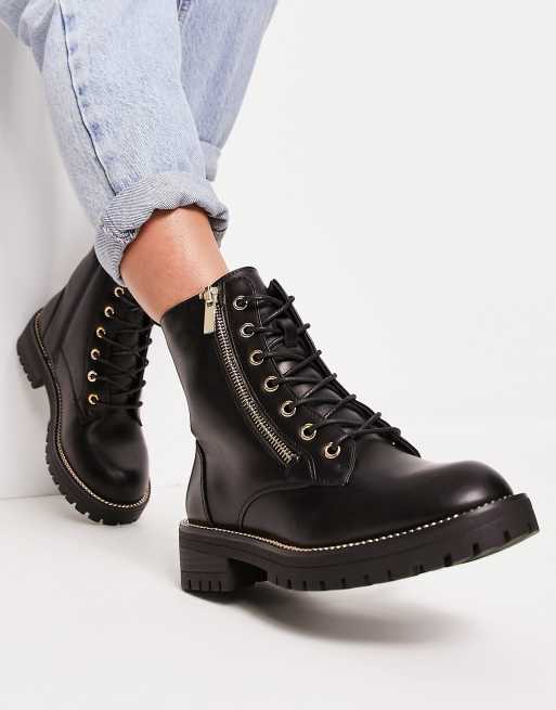 New Look - Stivali bassi neri stringati con zip