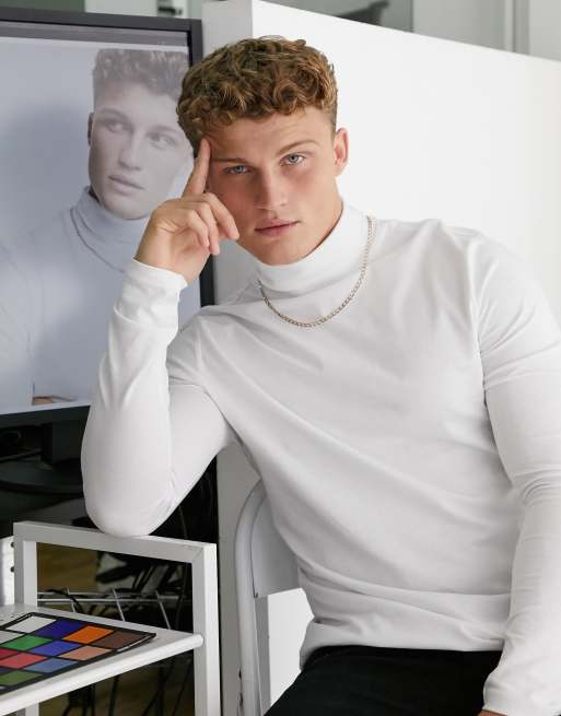 New Look - T-shirt a maniche lunghe bianca con collo alto