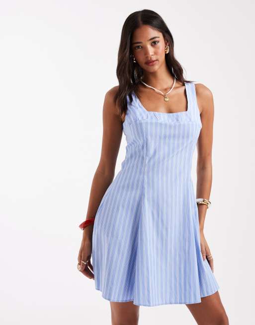 New Look - Vestito corto in popeline blu a righe