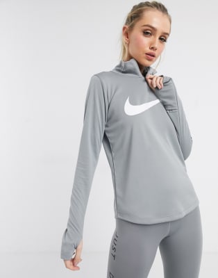 Nike Running - Leggings con logo e zip a tre quarti e top senza maniche grigio