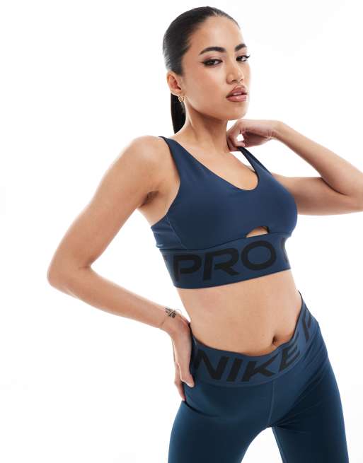 Nike Pro Training - Indy - Reggiseno sportivo blu navy a supporto medio con scollo profondo