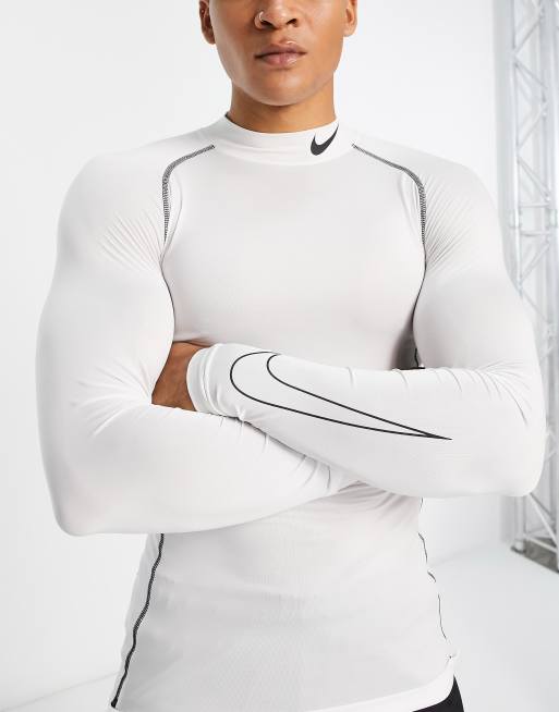 Nike - Pro Training - Top a maniche lunghe attillato con collo a lupetto bianco