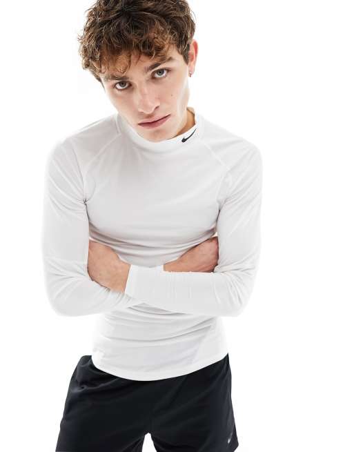 Nike - Pro Training - Top a maniche lunghe attillato con collo a lupetto bianco