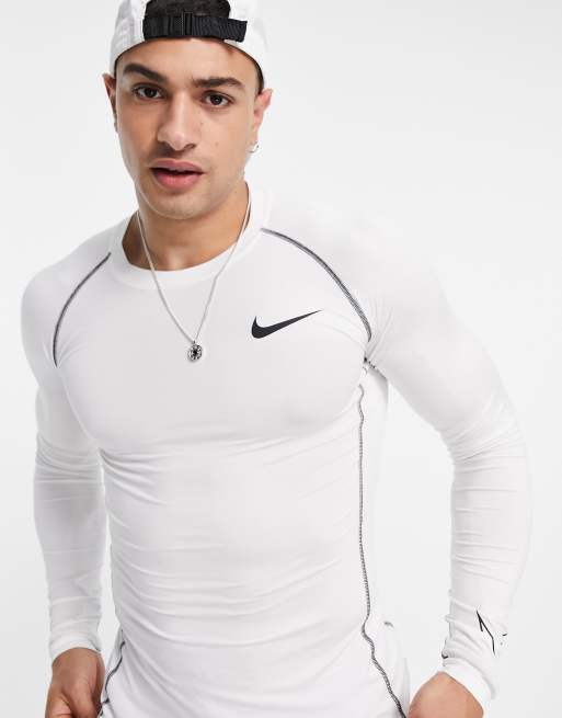 Nike Pro Training - Top baselayer a maniche lunghe bianco