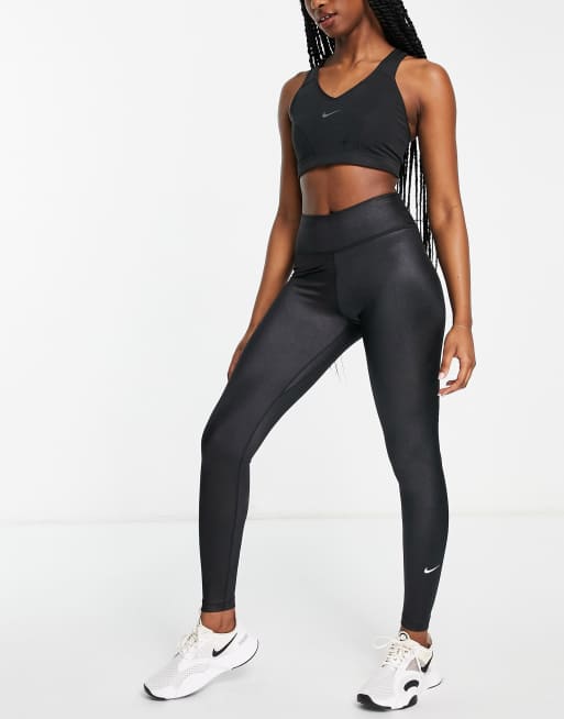 Nike Training - High Shine One Dri-FIT - Leggings lucidi neri