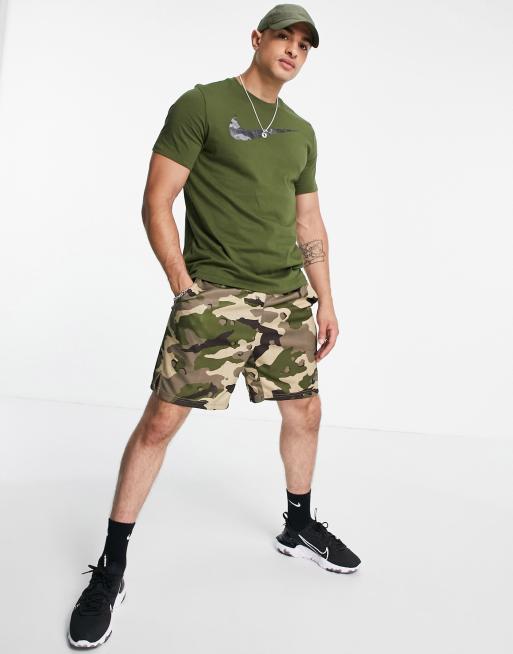 Nike Training - T-shirt color kaki mimetica con logo Nike