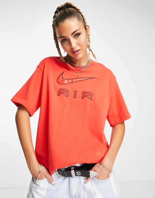 Nike Air - T-shirt boyfriend oversize rosso cremisi con logo