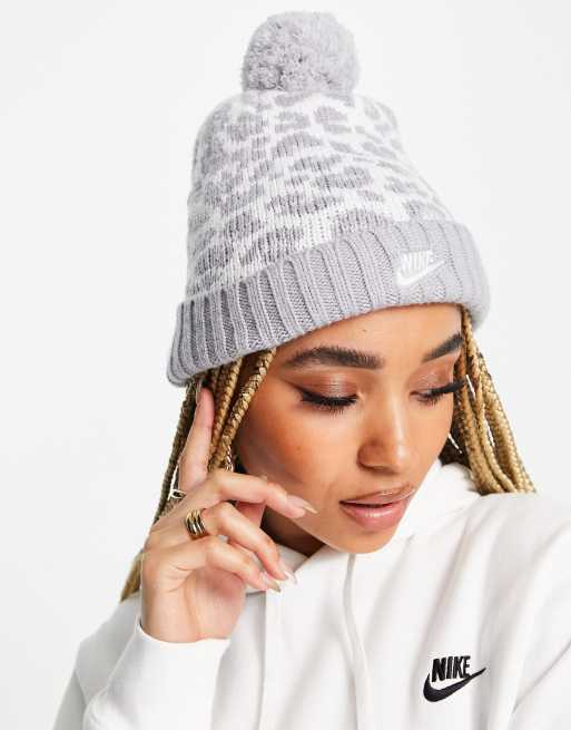 Nike - Berretto grigio leopardato con pompon