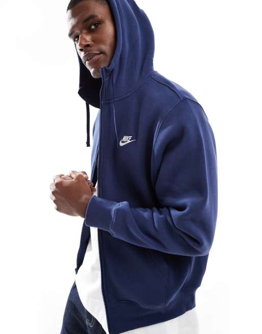 Nike Club - Felpa blu navy in pile con zip e cappuccio