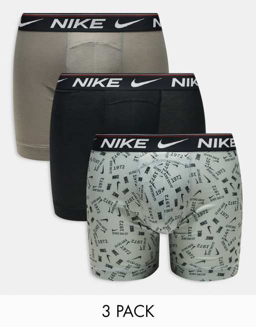 Nike - Dri-Fit Ultra Comfort - Confezione da 3 boxer nero, grigio con stampa e verde
