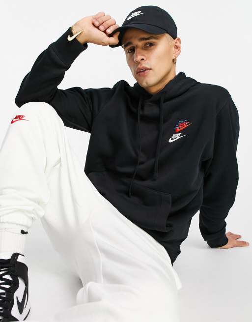 Nike - Essential fleece+ - Felpa con cappuccio nera con logo multi