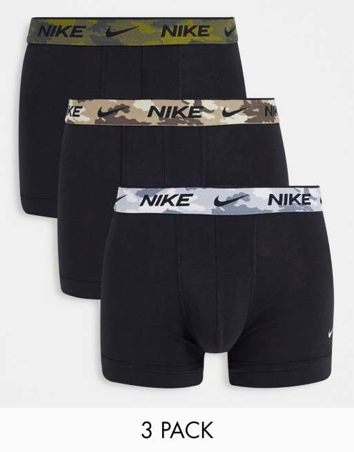 Nike - Everyday - Confezione da 3 boxer aderenti neri in cotone elasticizzato con elastico mimetico