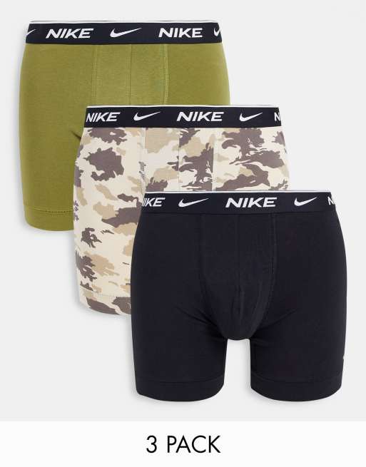 Nike - Everyday - Confezione da 3 paia di boxer aderenti nero/kaki/mimetico in cotone elasticizzato