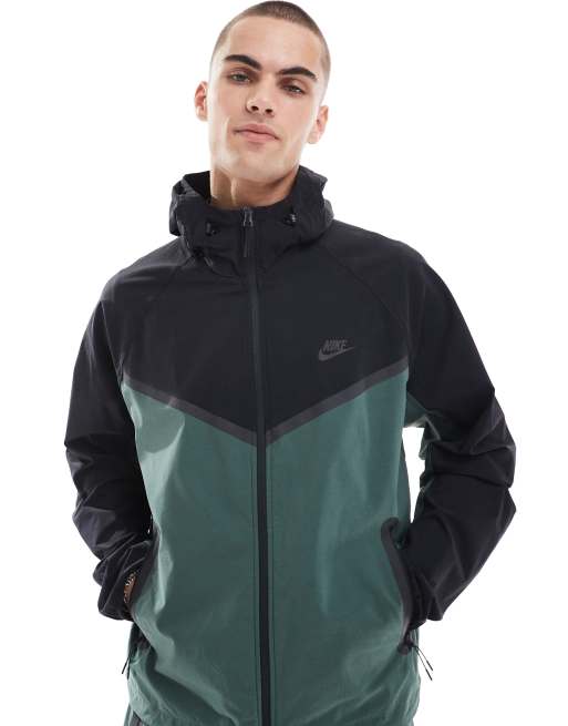Nike - Giacca tecnica verde scuro e nera con zip