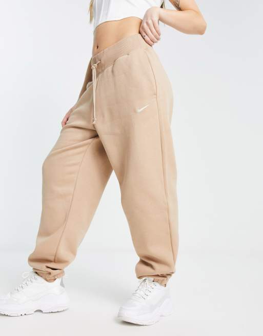 Nike - Joggers a vita alta oversize marrone canapa con logo piccolo