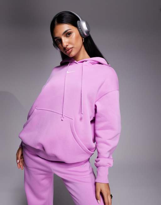 Nike - Phoenix Fleece - Felpa rosa oversize con cappuccio