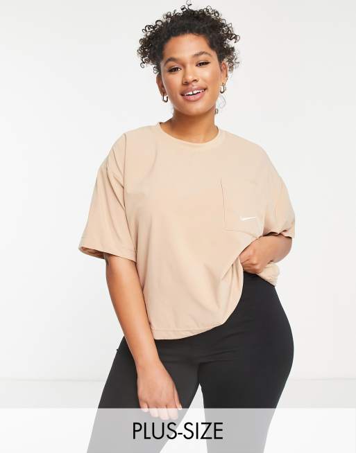 Nike Plus - T-shirt corta squadrata per tutti i giorni marrone canapa