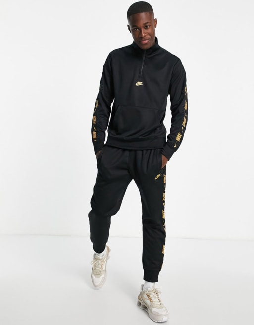 Nike - Repeat - Tuta sportiva nera e oro con fettuccia con logo