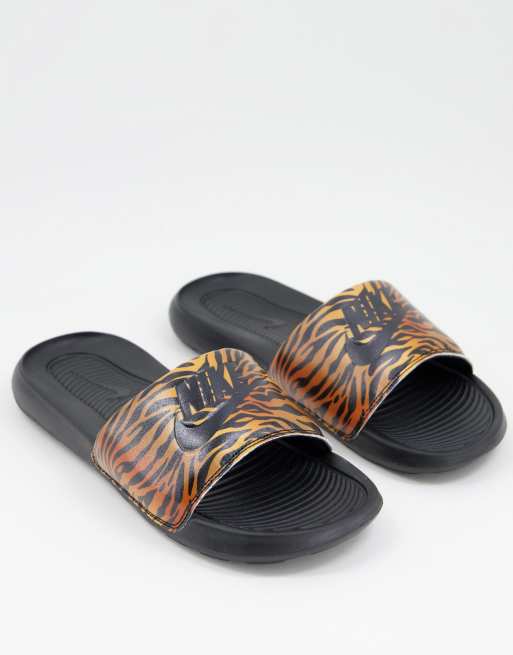 Nike - Victori One - Sliders nere con stampa tigrata