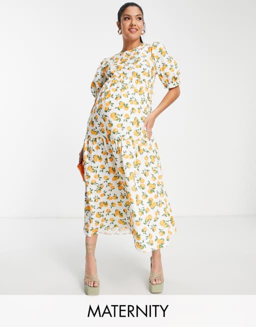 Nobody's Child - Rochelle - Vestito premaman color crema con stampa di arance