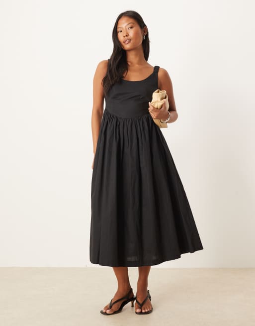 Nobody's Child Petite - Marina - Vestito midi nero con scollo rotondo