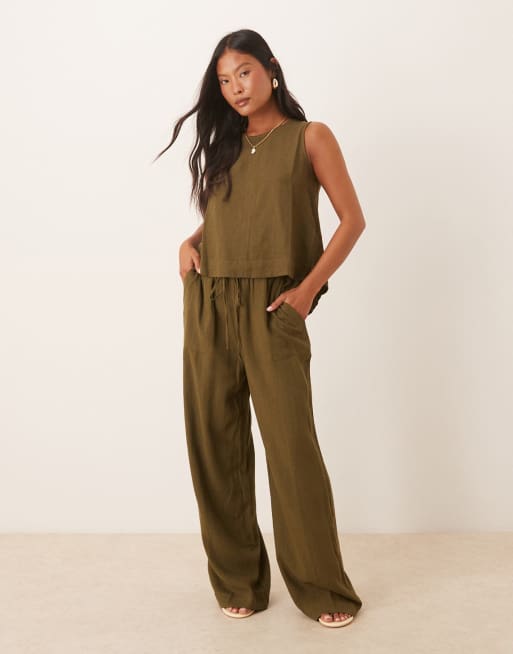Nobody's Child Petite - Shona - Pantaloni dritti verdi in coordinato