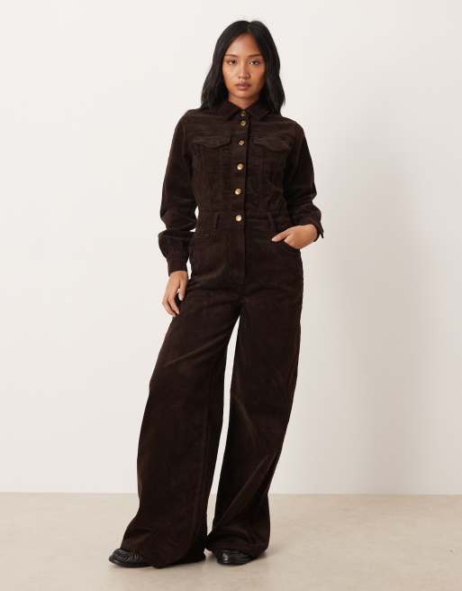 Nobody's Child Petite - Tuta jumpsuit in tessuto a coste marrone
