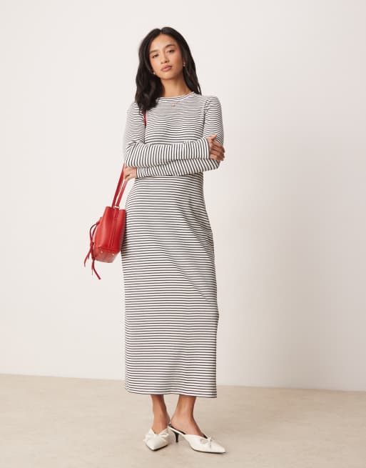Nobody's Child Petite - Vestito lungo a colonna con motivo a righe monocromatico a coste