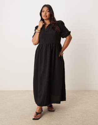Nobody's Child Plus - Hebe - Vestito midi nero con colletto e maniche a sbuffo