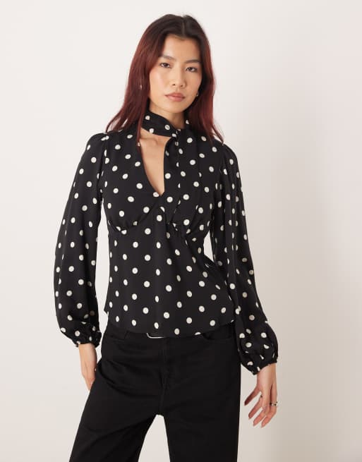 Nobody's Child - Blusa blu navy a pois allacciata al collo