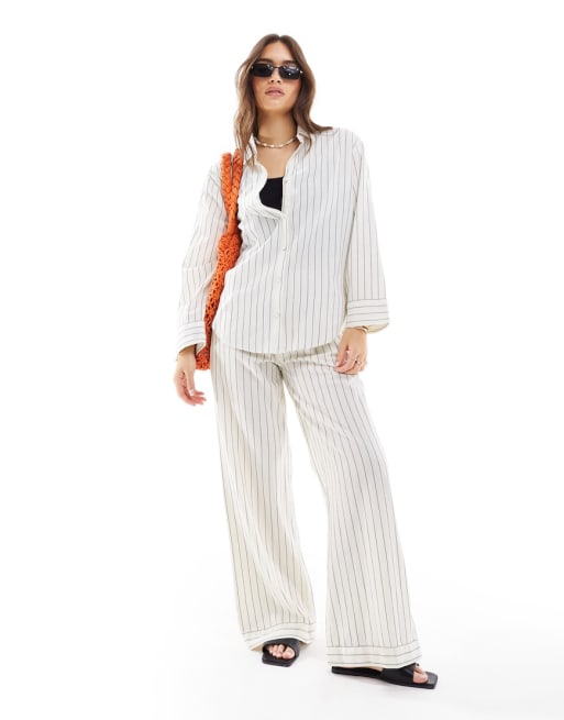 Nobody's Child - Coordinato color crema gessato composto da camicia e pantaloni
