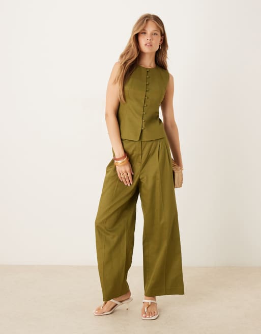 Nobody's Child - Jax - Pantaloni sartoriali a fondo ampio kaki in coordinato