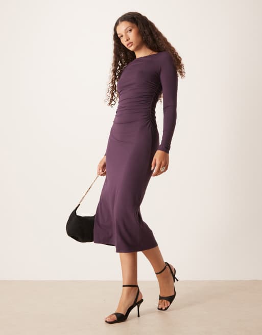Nobody's Child - Laurella - Vestito midi a maniche lunghe drappeggiato color uva scuro