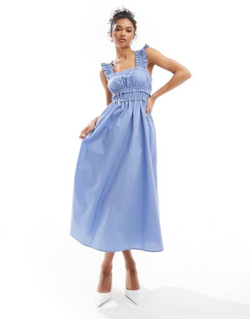 Nobody's Child - Lennie - Vestito punto smock in cotone blu con spalline sottili