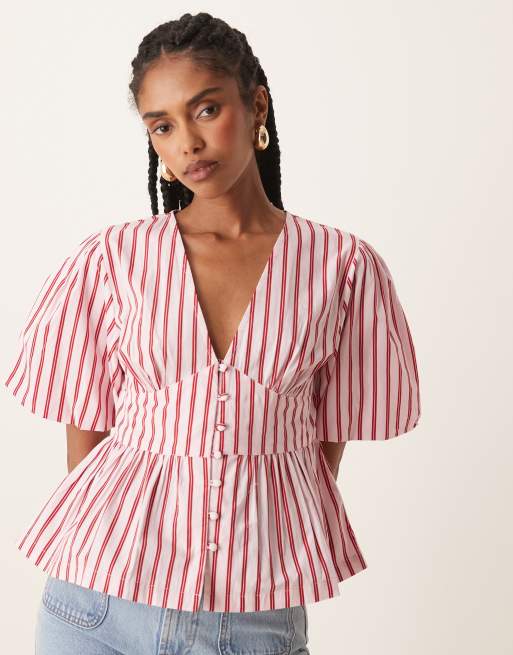 Nobody's Child - Starlight - Top rosa a righe con maniche a sbuffo